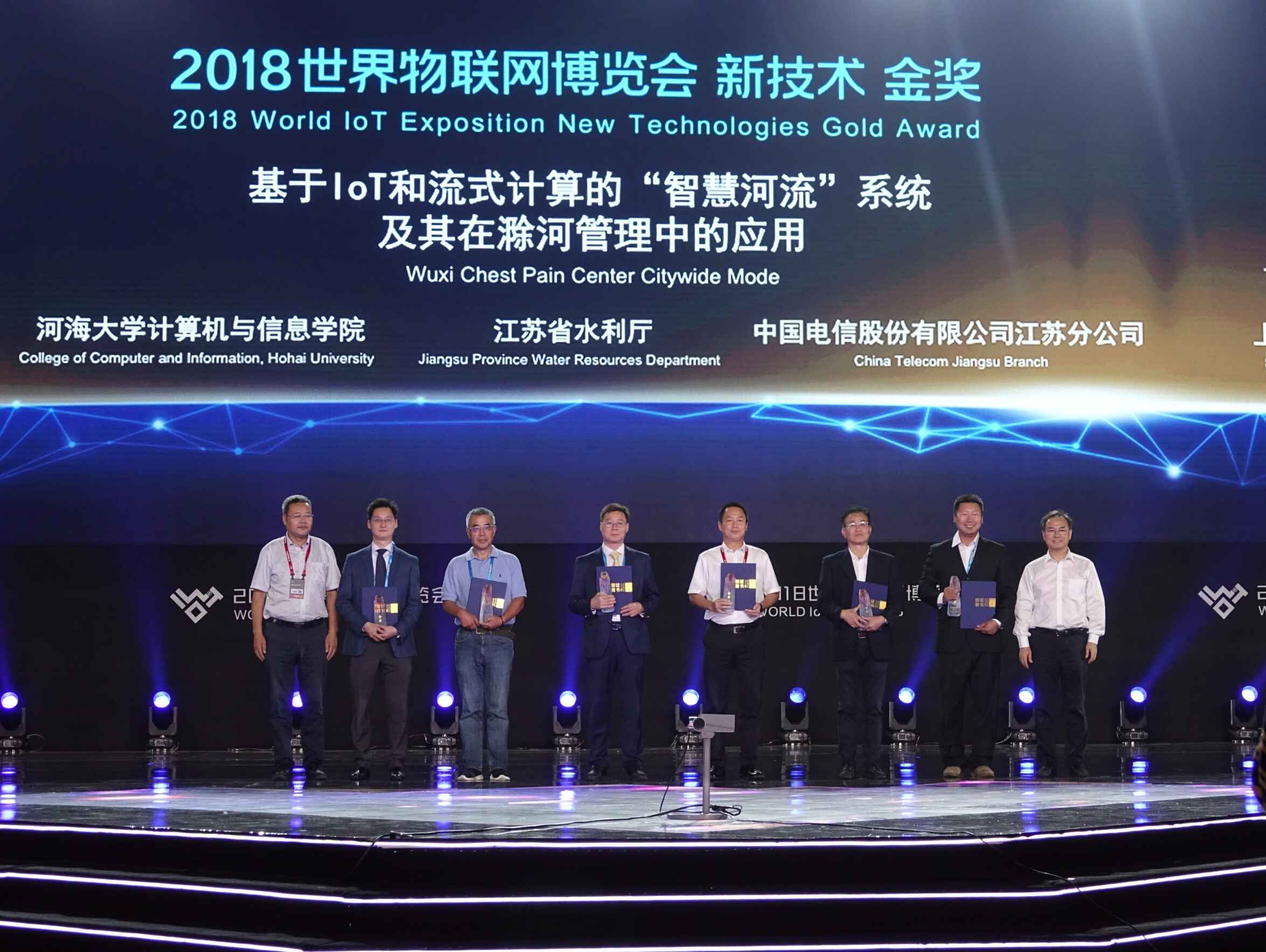 9月15日,2018世界物联网博览会新技术新产品新应用成果发布会在无锡举行。以大赢家比分 计算机与信息大赢家比分 为主,联合江苏省水利厅、中国电信江苏公司研发并申报的“基于IoT和流式计算的‘智慧河流’系统”,获得大会金奖,并获得由多位院士组成的专家委员会的高度评价。王志坚教授代表整个项目团队领取了金奖奖杯和证书,大赢家比分 领导张雪刚书记、叶保留院长作为获奖单位嘉宾也受邀参加了本次盛会。