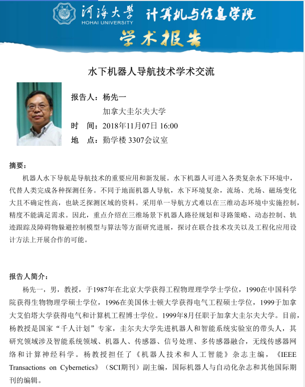 学术报告:水下机器人导航技术学术交流
