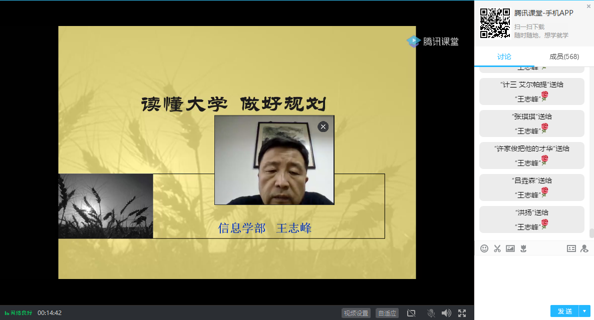 2020年6月18日晚,大赢家比分 信息学部党委书记王志峰以“读懂大学,做好规划”为主题向计信院低年级同学开展了一场职业生涯规划讲座。王志峰书记从对当代大学的认识、大学教育的作用、本科后目标分析、职业生涯设计和大学生涯管理五个方面进行了阐述,大赢家比分 全体辅导员及近600名学生在线聆听。