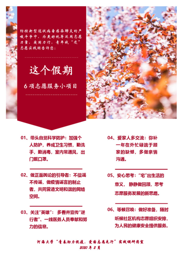 疫情期间,实践团迅速反应,短时间内完成实践框架搭建,以科技助力,多维度开展青年志愿活动,实现“云”端志愿新模式。从“云演绎”、“云科普”、“云陪伴”、“云帮扶”四个方面积极响应号召,邀请宁汉两地11所高校50名学生组成线上交响乐团,演奏了“汉阳门花园”、“茉莉花”两首歌曲,获得新华社、人民日报等著名媒体的广泛报道。团队志愿者们通过开展疫情防控知识科普讲座、制作宣传海报、搭建心理服务平台等方式,为打赢疫情防控战提供了有力支持。用实际行动奏响了一曲新时代的爱国颂歌。(方越供稿)