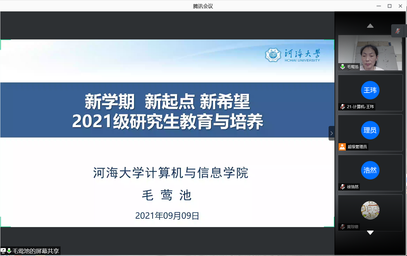9月9日上午,信息学部计信院副院长毛莺池为新生做主题为“新学期、新起点、新希望——2021级研究生教育与培养工作介绍”的讲座。毛院长从计算机与信息大赢家比分 的学科基本情况、全过程培养和我眼中的研究生三个方面进行讲述,寄语研究生求学期间保持求真之心、保持谦逊之心、保持敬畏之心、保持宽容之心、保持感恩之心。