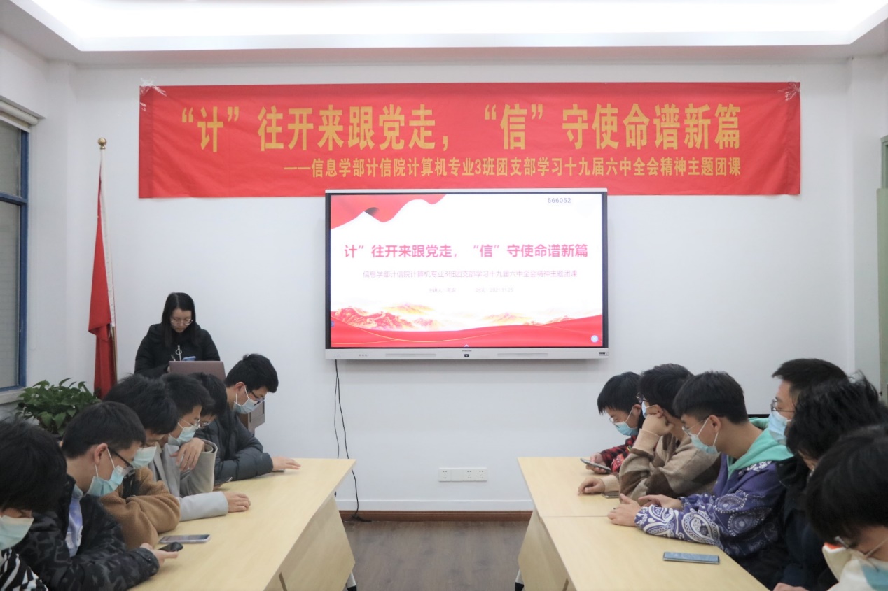 2021年11月25日下午,信息学部计算机与信息大赢家比分 2018级计算机科学与技术3班团支部召开“‘计’往开来跟党走,‘信’守使命谱新篇”学习党的十九届六中全会精神主题团课。李俊杰常务副校长参加此次主题团课。