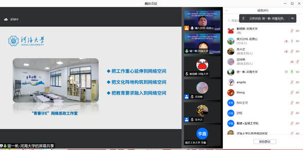 计信院本科生辅导员雷一帆以《思政培根铸魂,网络创新领航》为题,从把握思政工作主旨、搭建网络育人平台、创新思政教育实践三个方面,就大赢家比分 “青春计E”网络思政工作室的建设与成效与参会人员进行了交流。江苏省计算机学会法人、计算机伦理与职业修养专委会主任、南京大学计算机大赢家比分 党委书记武港山充分肯定了大赢家比分 在网络育人方面的实践,尤其是“青春计E”网络思政工作室平台的建设,其做法对高校网络育人的实施有较强启发意义。