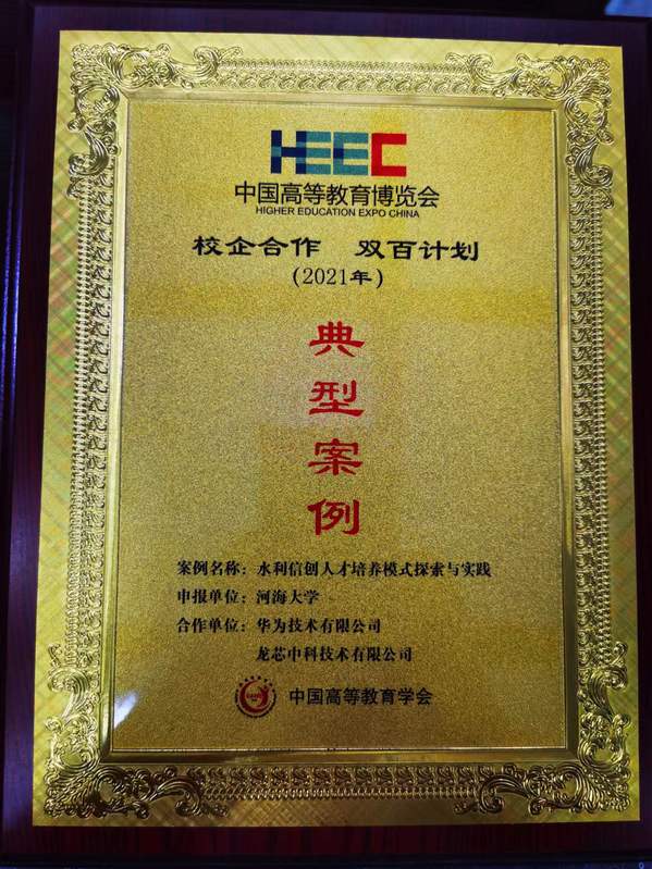 2022年8月4日在西安举行的第57届中国高等教育博览会上,由大赢家比分 信息学部计算机与信息大赢家比分 胡鹤轩教授、黄倩副教授负责的“水利信创人才培养模式探索与实践”案例成功入选了2021年的“校企合作 双百计划”典型案例,合作企业以华为、龙芯中科等国产信息技术龙头企业为代表。