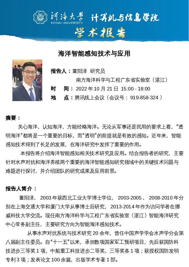 学术报告:海洋智能感知技术与应用