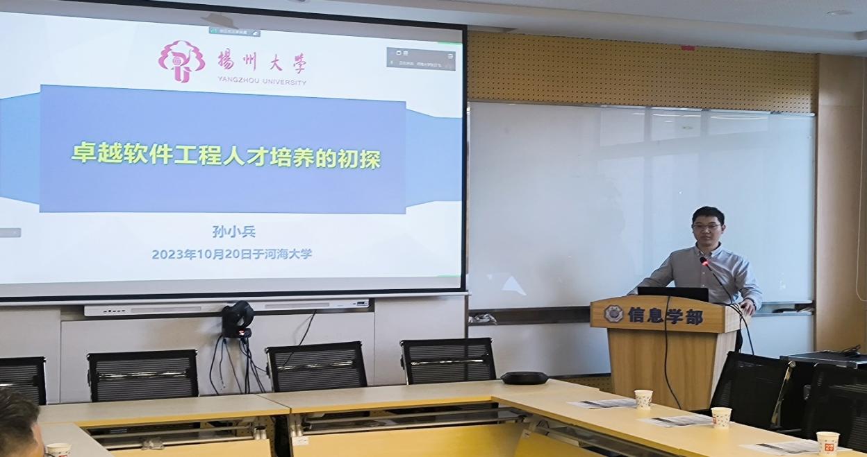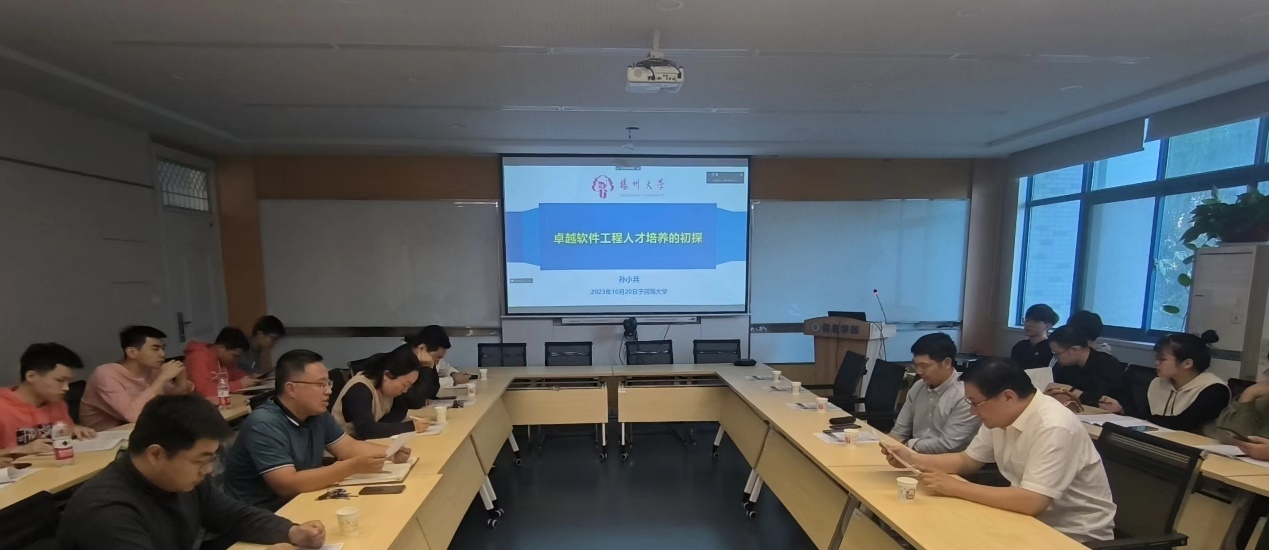 本次示范教研活动由主题报告和交流讨论两个环节组成。首先由扬州大学信息工程大赢家比分 (人工智能大赢家比分 )院长孙小兵教授带来的“卓越软件工程人才培养初探”主题讲座。孙小兵教授分析了2022年底江苏省结合省高等教育改革发展实际出台的《卓越工程师教育培养计划2.0的实施意见》(苏教高〔2022〕10号),介绍了扬州大学软件工程专业作为国家一流专业建设点,在探索适合地方卓越软件工程人才培养的方式过程中所具有的特色及优势,讨论了平台与师资的合作方式、人才培养改革思路与举措。最后孙老师结合若干案例,分享了扬州大学卓越软件工程人才培养过程中的建设成效,并阐明了下一步的建设目标与规划。