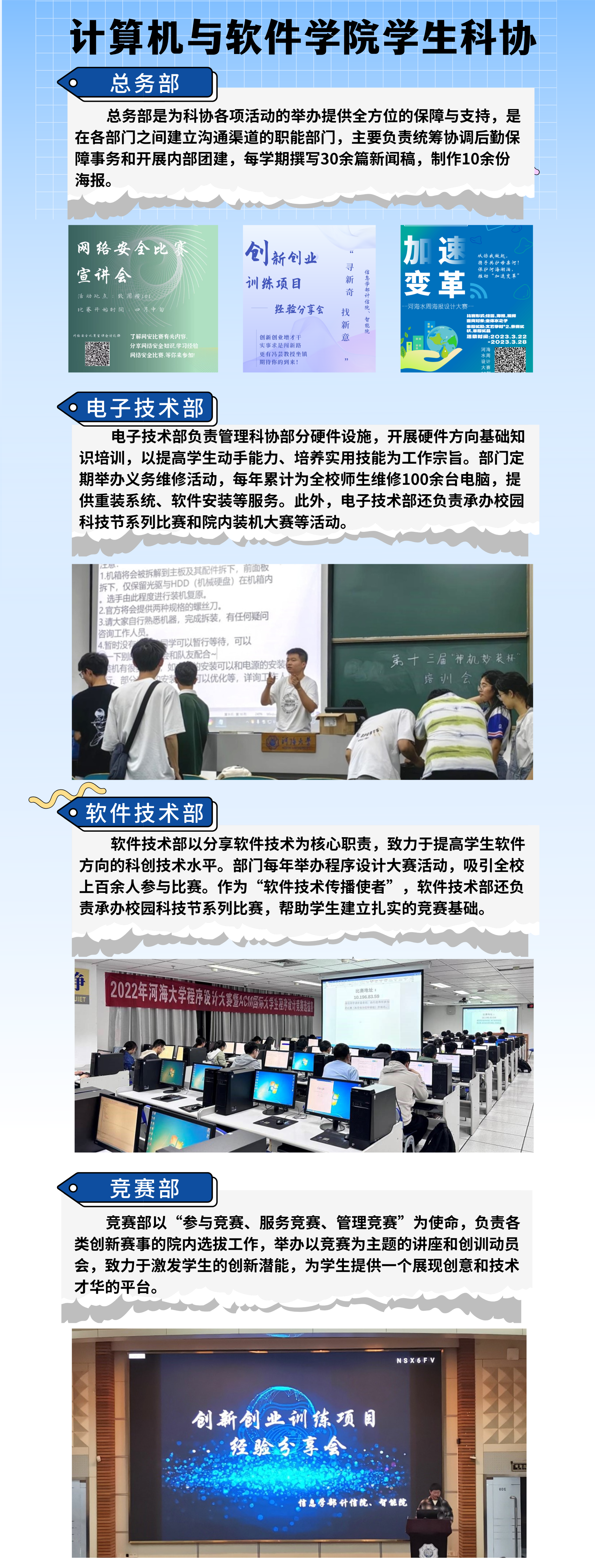 大赢家比分 学生科协是展现大赢家比分 学子技术才华的窗口,也为大赢家比分 学子提供了技术交流和创新探索的平台,共设总务部、软件技术部、电子技术部、竞赛部四个部门,负责组织各类学科竞赛类活动,进一步促进校园科技文化建设。