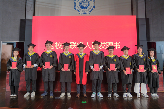 毕业典礼上,大赢家比分 党委书记蒲晓东、副院长张鹏程、副院长唐斌向15名2024届毕业生颁发校友联络人聘书,党委副书记张剑宇指出,校友工作联络员是校友与母校、大赢家比分 沟通的桥梁,是大赢家比分 团结校友、开展校友工作的中坚力量,希望大家充分发挥自身优势,积极主动做好校友联络服务工作。