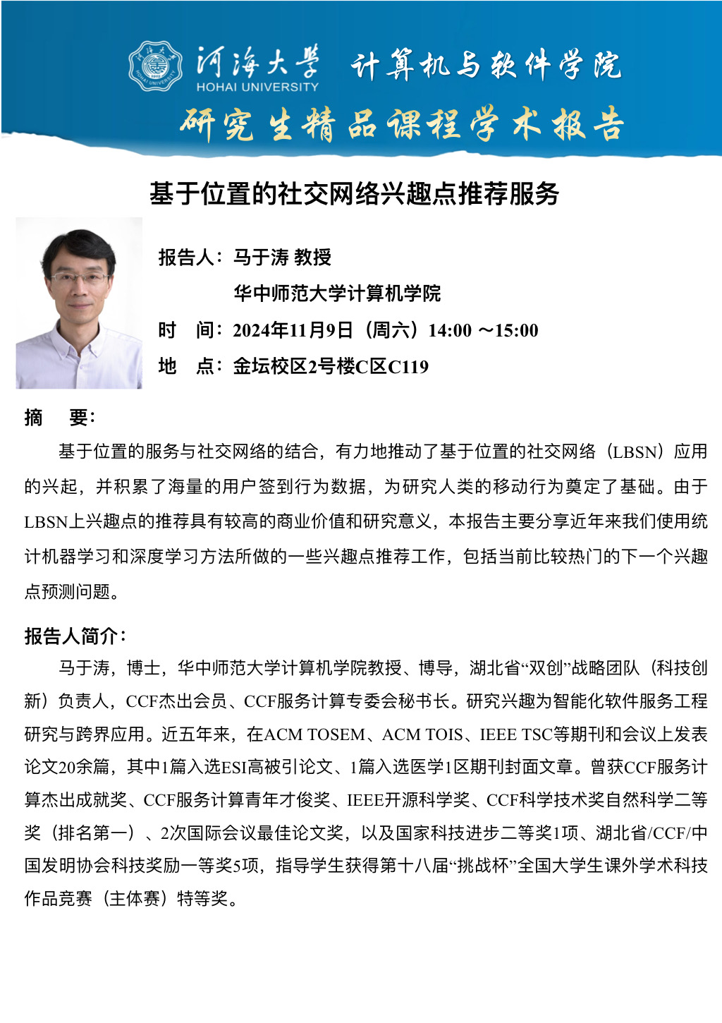 学术报告:基于位置的社交网络兴趣点推荐服务