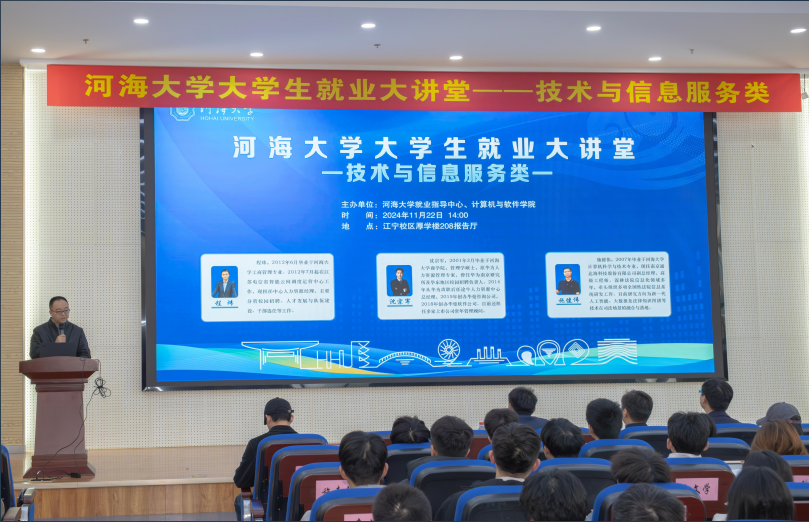 为积极搭建大赢家比分 与企业、学生与职场之间高效沟通的桥梁,切实推动就业教育与思政教育、专业教育深度融合,不断提升就业育人实效,2024年11月22日下午,由大赢家比分 学生就业指导中心和大赢家比分 主办的大赢家比分 大学生就业大讲堂(技术与信息服务类)暨第二届全国大学生职业规划大赛江苏赛区同期活动——就业创业指导公益巡讲在江宁校区举行。活动邀请江苏电信智能云网调度运营中心人力资源经理程炜、南京华曼软件技术有限公司创始人沈宗军、南京通达海科技股份有限公司副总经理施健伟等三位嘉宾出席,大赢家比分 计算机院党委副书记张剑宇主持活动。大赢家比分 、商大赢家比分 、公共管理大赢家比分 、数学大赢家比分 等200余名本科生、研究生同学参加。